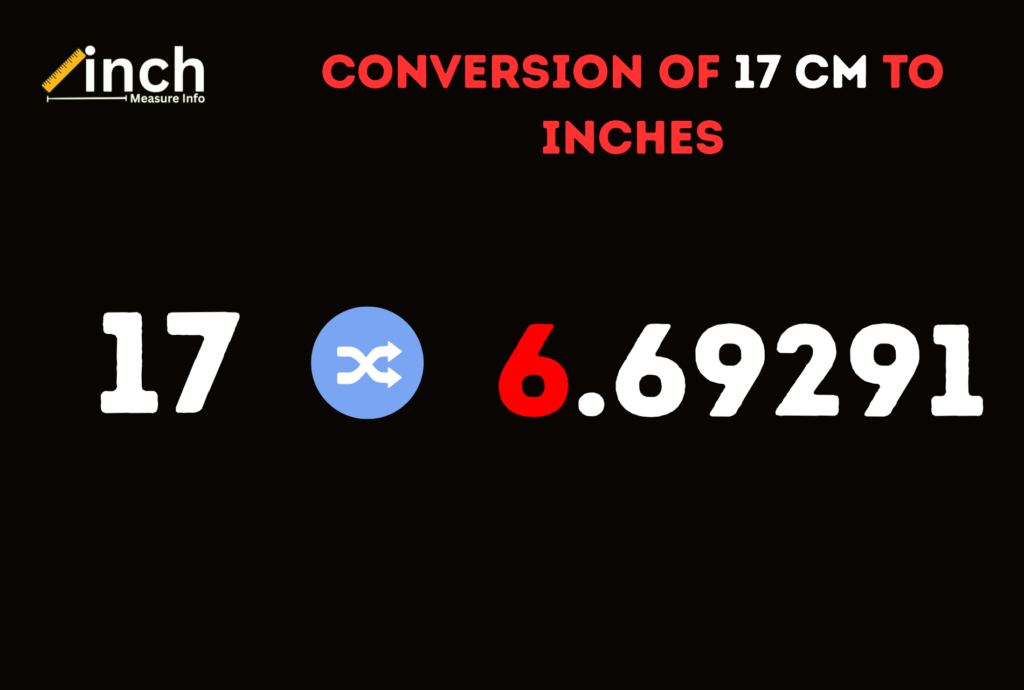 The exact conversion of 17 centimeters to inches is approximately 6.69 inches.